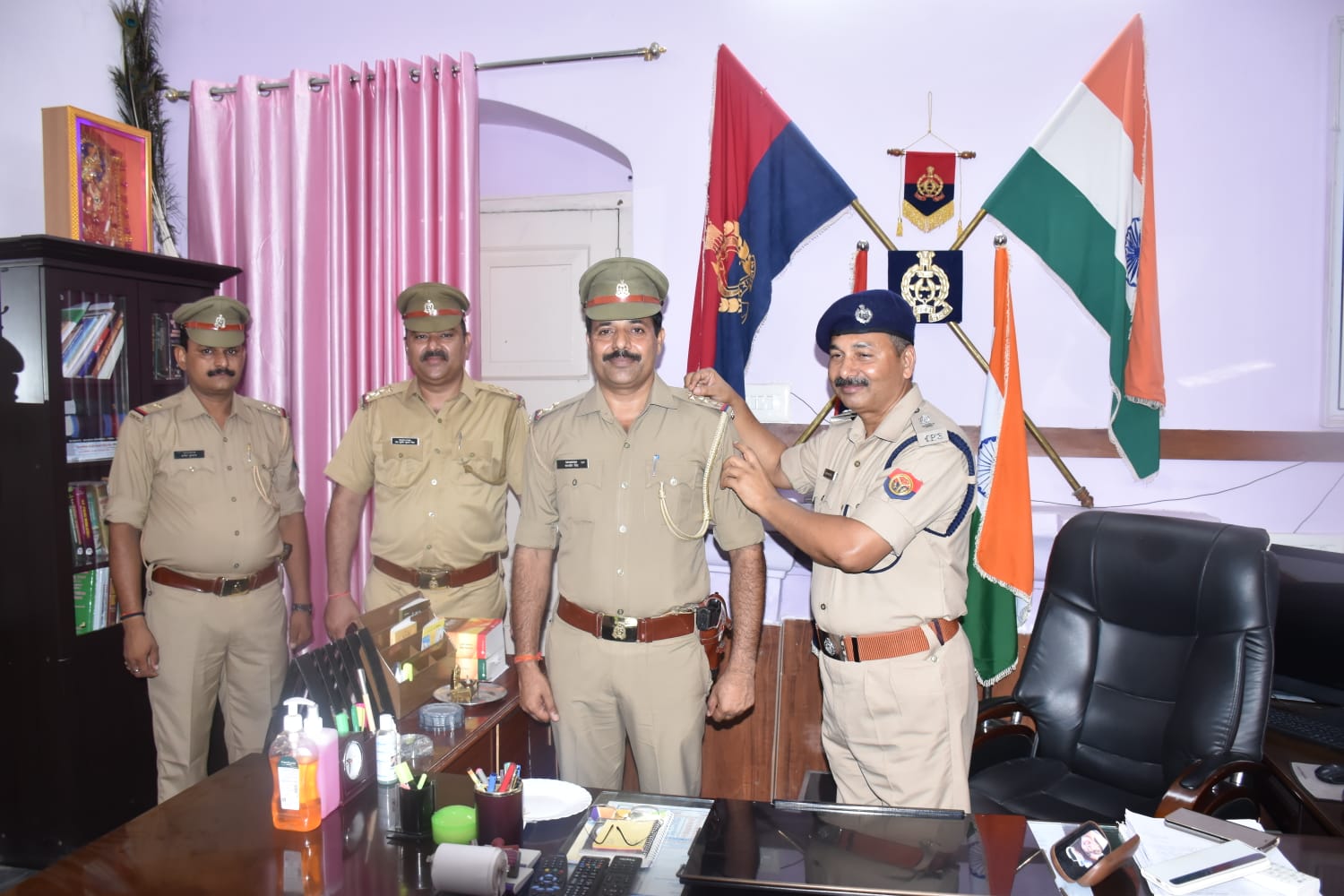 एटा,(उतर प्रदेश):_आज दिनांक 26.07.2022 को वरिष्ठ पुलिस अधीक्षक एटा श्री उदय शंकर सिंह द्वारा उ0नि0 नागरिक पुलिस के पद से निरीक्षक नागरिक पुलिस के पद पर पदोन्नत हुए 13 निरीक्षकों को स्टार लगाकर सम्मानित किया गया। इस मौके पर अपर पुलिस अधीक्षक एटा श्री धनंजय सिंह कुशवाहा, अपर पुलिस अधीक्षक अपराध एटा श्रीमती स्नेहलता, क्षेत्राधिकारी यातायात श्री संगम मिश्रा एवं पुलिस कार्यालय का अन्य पुलिस बल मौजूद रहा।