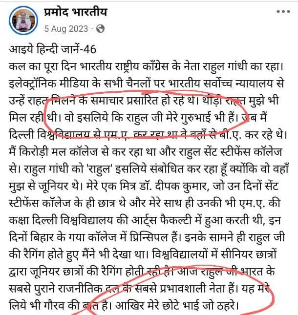 प्राचार्य महोदय का फेसबुक खोलिए तो वहां मोदी सरकार और मंत्रियों पर तंज ही तंज, कार्टून ही कार्टून मिलेंगे। और दूसरी ओर राहुल गांधी पर गर्व का बयान—“गुरुभाई”! यानी एक हाथ से व्यंग्य के बाण, तो दूसरे हाथ से विपक्ष के लिए प्रशंसा की माला।