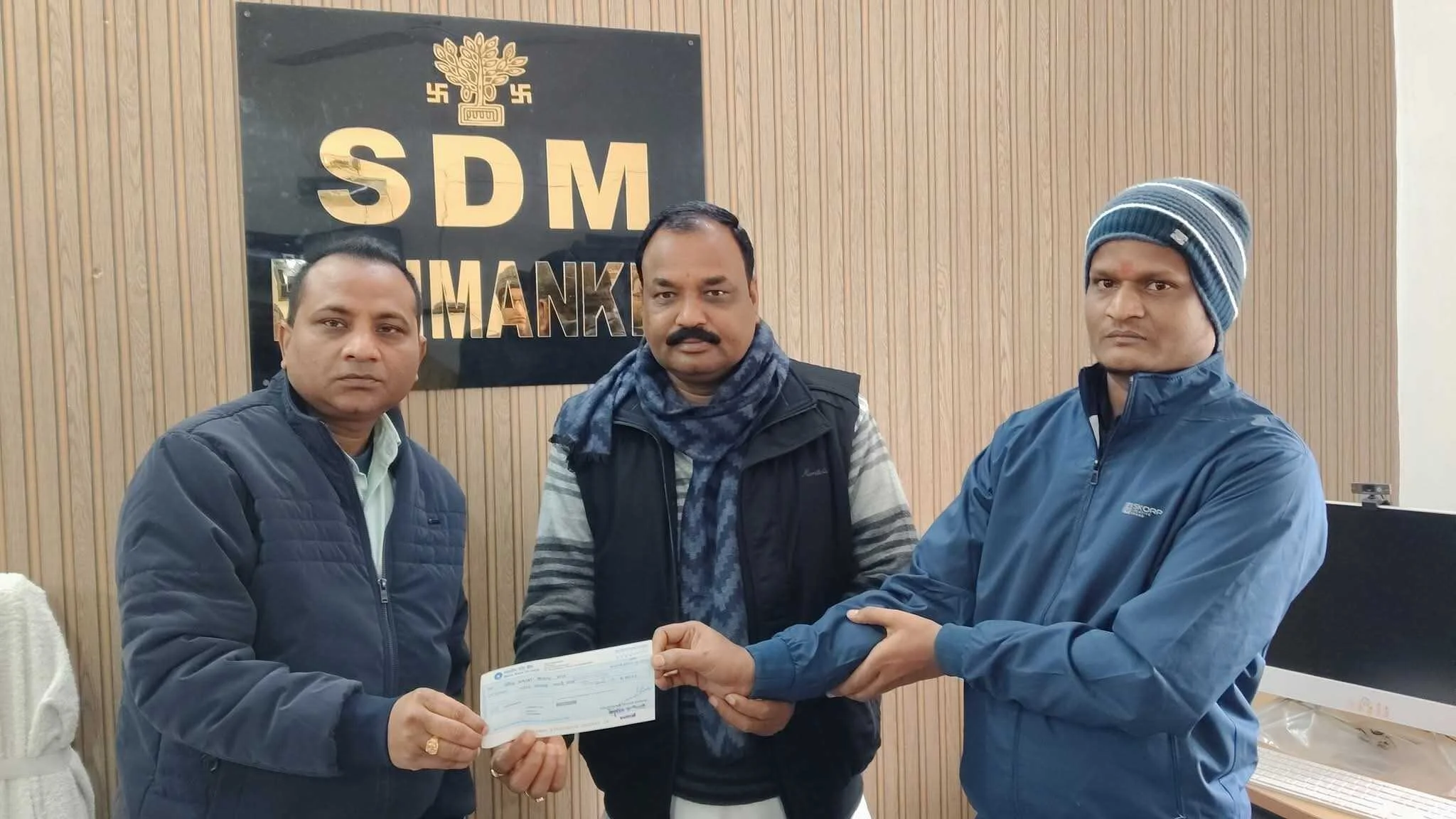 #आपदा राहत कोष से मृतक के पुत्र को विधायक व एसडीएम ने संयुक्त रूप से सौंपा चार लाख रुपये का चेक.