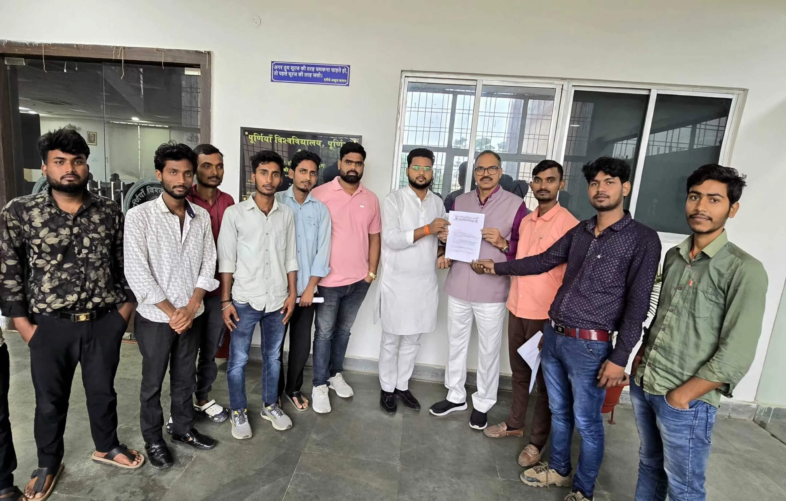 सम्पूर्ण भारत,पूर्णिया: अखिल भारतीय विद्यार्थी परिषद (अभाविप) के शिष्टमंडल ने पूर्णिया विश्वविद्यालय अंतर्गत गोरेलाल मेहता महाविद्यालय, बनमनखी की विभिन्न समस्याओं को लेकर कुलपति विवेकानंद सिंह को 16 सूत्री मांगपत्र सौंपा।