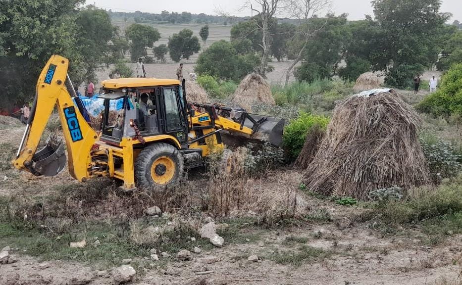 तहसील एटा सदर क्षेत्र के गांव हिम्मतनगर बझेरा में राजस्व एवं पुलिस टीम ने अवैध अतिक्रमण को जेसीबी के माध्यम से कराया ध्वस्त*