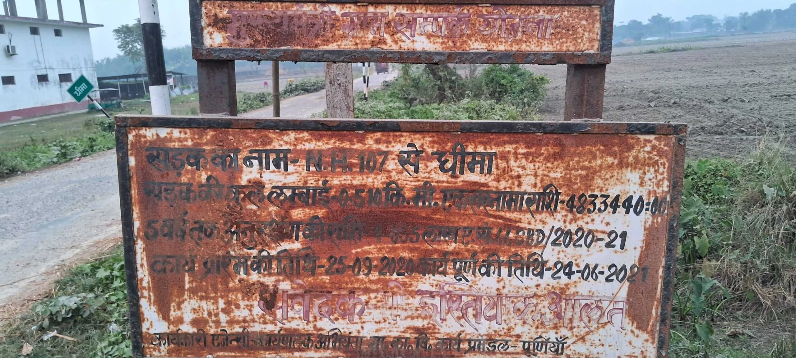प्रतिनिधि,बनमनखी:-नगर परिषद बनमनखी के वार्ड संख्या 20 स्थित धीमा गांव में हो रहे सड़क निर्माण कार्य में भारी अनियमितताओं का आरोप स्थानीय ग्रामीणों ने लगाया है। ग्रामीणों के अनुसार जय किशोर पासवान के घर से विरेंद्र रजक के घर तक लगभग 350 फीट लंबी सड़क का पिसी सी( ढलैया) कार्य संवेदक द्वारा कराया जा रहा है, लेकिन निर्माण स्थल पर शिलापट्ट तक नहीं लगाया गया, जिससे योजना संबंधी जानकारी सार्वजनिक नहीं हो पा रही है.
