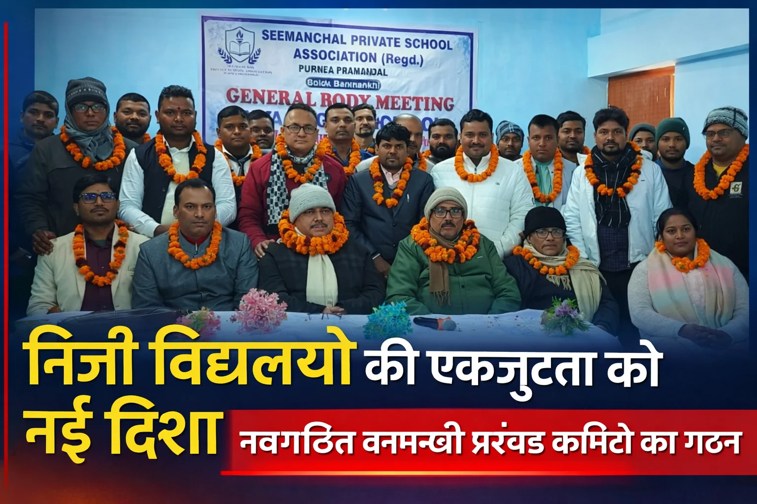 बनमनखी (पूर्णियां) : प्रखंड क्षेत्र के निजी विद्यालयों की समस्याओं के समाधान और आपसी समन्वय को मजबूत करने के उद्देश्य से मंगलवार को रिया पब्लिक स्कूल, संत कबीर नगर धरहरा में सीमांचल प्राइवेट स्कूल एसोसिएशन, पूर्णिया प्रमंडल के बैनर तले एक महत्वपूर्ण बैठक आयोजित की गई। बैठक की अध्यक्षता जिला अध्यक्ष उदय शंकर प्रसाद सिंह ने की।