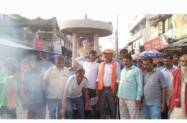 राजस्थान के उदयपुर में नृशंस निर्मम हत्या के विरोध में विहिप बजरंगदल ने किया जिहादी आतंकी का पुतला दहन